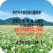 小倉南区八重洲町で8年間、「手打ち十割そば 健寿亭」を営業していましたが、通勤時間が1時間かかるので、この度、直方市上境1139ー1の自宅で、予約制で、コース料理の「手打ち十割そば 健寿亭」を始めました。